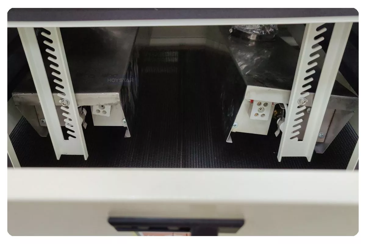 1000mm चौडाइ कन्वेयर UV क्युरिङ मेसिन कन्वेयर बेल्ट एक इलेक्ट्रिक मोटर द्वारा नियन्त्रित छ, र यसको गति विभिन्न सुख्खा मागहरू मिलाउन आवश्यक उत्पादन गतिको आधारमा समायोजित गर्न सकिन्छ।