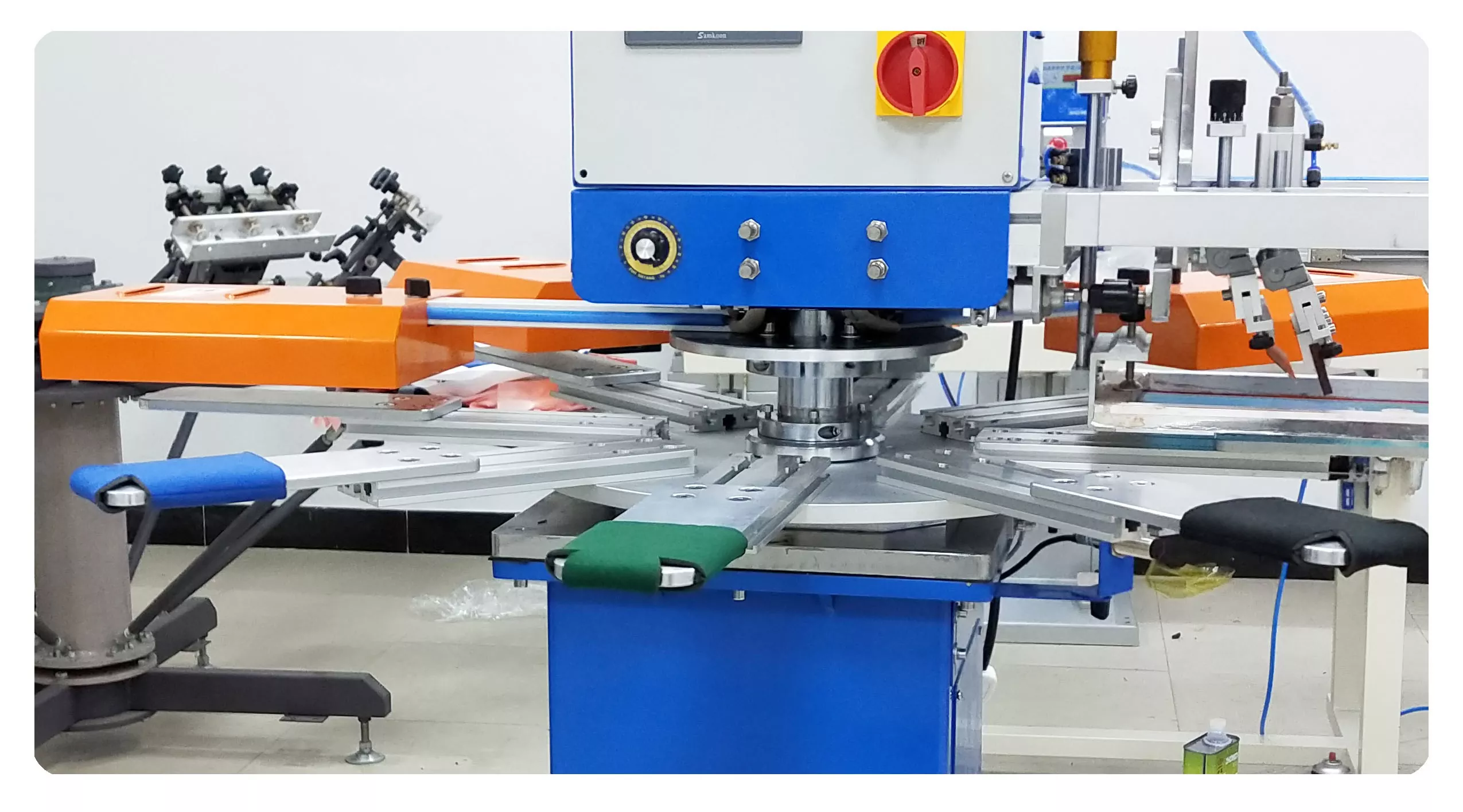5. रोटरी कार्यतालिकामा आठ स्टेशनहरू समावेश छन्: एउटा लोडिङको लागि, एउटा प्रिन्टिङको लागि, दुई सुक्खाका लागि, र एउटा अनलोडिङको लागि, पाँचवटा स्टेशनहरूलाई एकै समयमा काम गर्न सक्षम पार्दै।