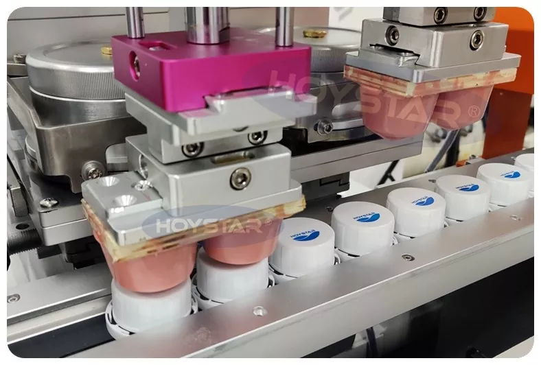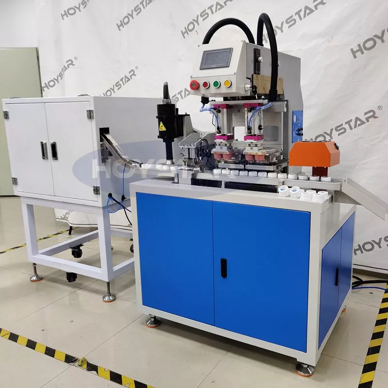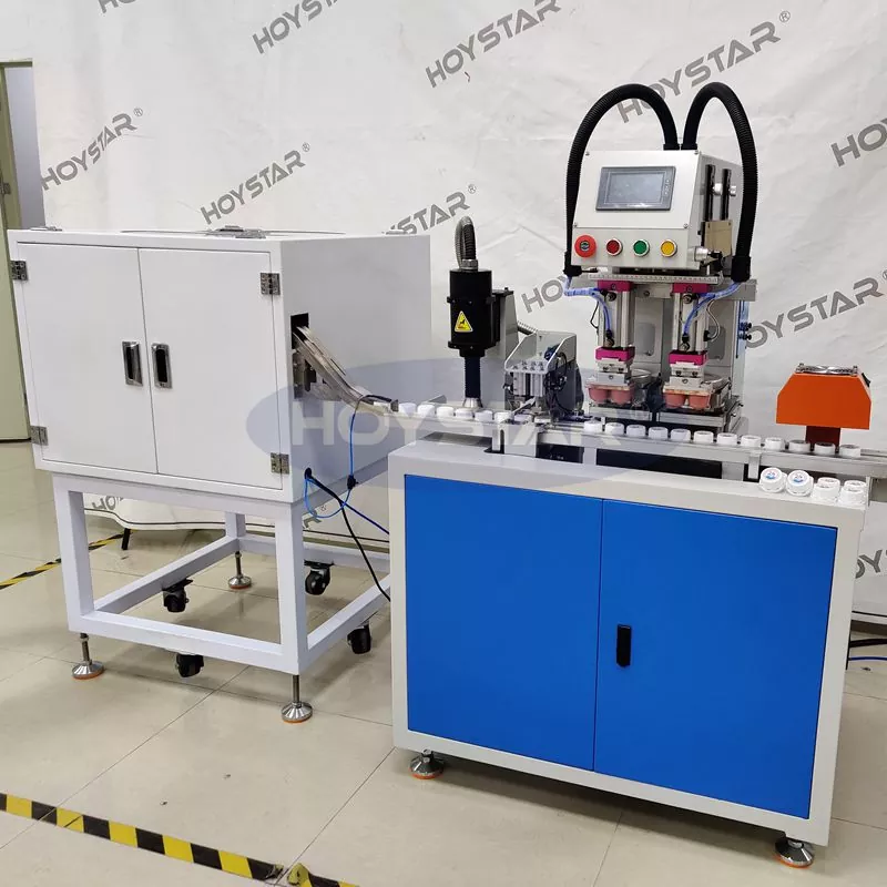 अटोमेटिक भाइब्रेसन फिडरले सुसज्जित प्लाज्मा ट्रीटमेन्टसहितको २ कलर बोतल क्याप्स प्याड प्रिन्टरले म्यानुअल अपरेशन बिना नै स्वचालित लोडिङ महसुस गर्न सक्छ, जनशक्ति बचत गर्छ।