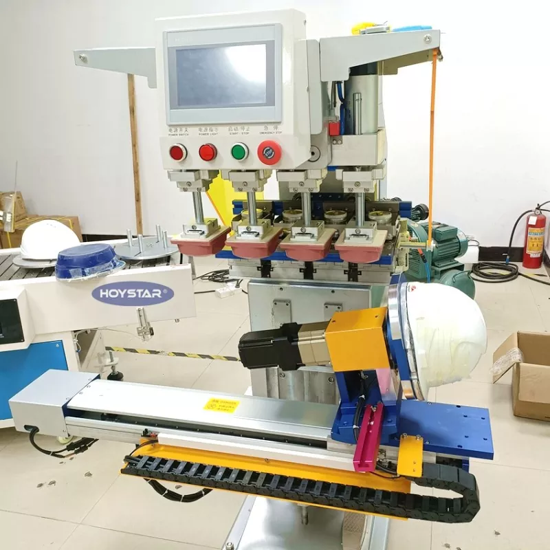 Dongguan Hoystar Machinery Co., Ltd. बाट हेलमेटका लागि अनुकूलित 4 रङ प्याड प्रिन्टिङ मेसिन पसल गर्नुहोस्, जुन चीनमा निर्माता र आपूर्तिकर्ताहरू मध्ये एक हो। यो HOYSTAR 4 कलर प्याड प्रिन्टिङ मेसिन हेलमेटका लागि PLC टच स्क्रिन नियन्त्रण प्यानलले सञ्चालन गर्न सजिलो छ। यो मेसिनले स्वचालित रोटरी प्रिन्टिङको लागि सर्वो मोटर नियन्त्रण सुविधा दिन्छ, 1 साइड, 2 साइड, वा हेलमेटको 4 छेउमा छाप्ने विकल्पहरू प्रदान गर्दछ। कार्यतालिका बायाँ/दायाँ, रोटरी एन्जिल, उत्पादन उचाइहरू समायोजन गर्न सकिन्छ। प्रत्येक मुद्रण टाउको स्वतन्त्र रूपमा समायोज्य छ र अलग सेट अप गर्न सकिन्छ।
