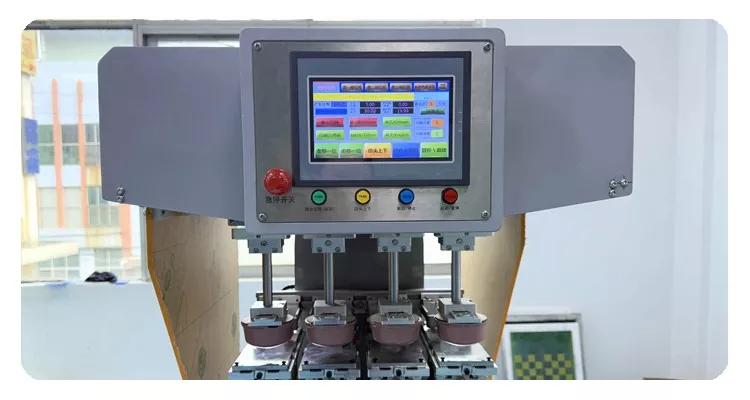 हेलमेटको लागि 4 रङ प्याड प्रिन्टिङ मेसिन नियन्त्रण गर्न टच प्यानल संग सुसज्जित