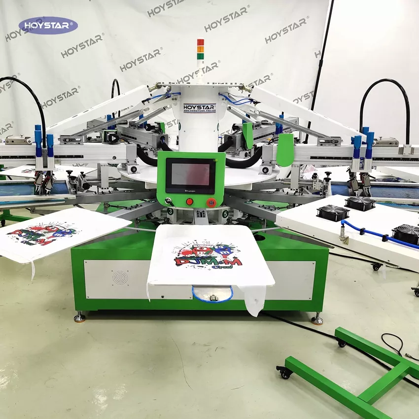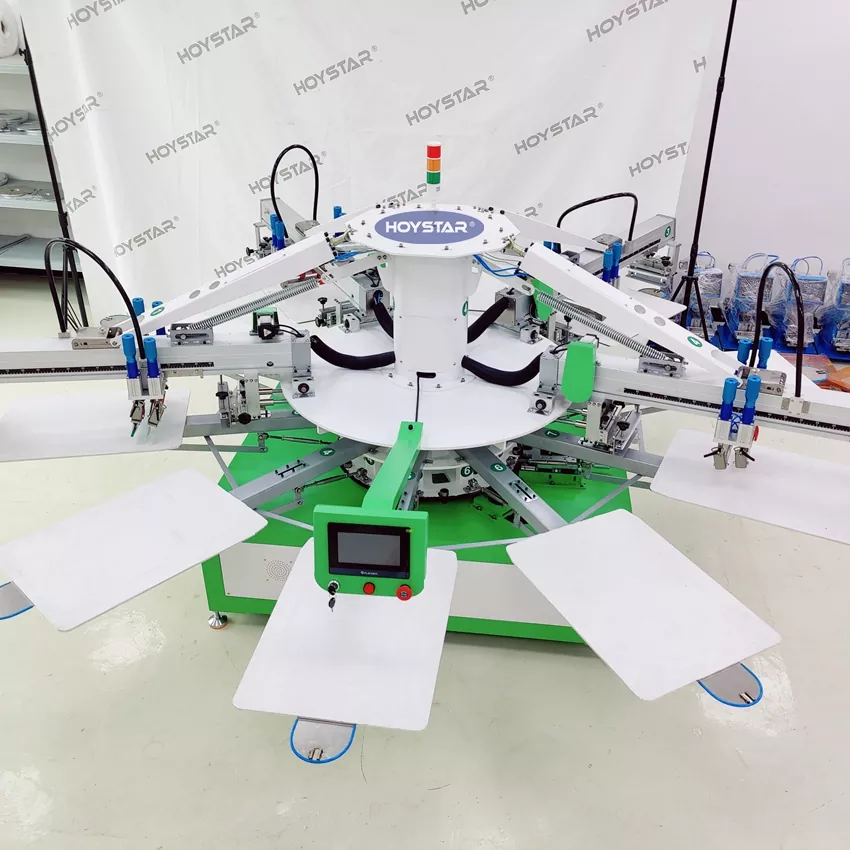 यो HOYSTAR 4 कलर टी शर्ट टेक्सटाइल प्रिन्टिङ स्क्रिन प्रिन्टिङ मेसिन विशेष गरी मुद्रण उद्योगका लागि डिजाइन गरिएको हो। एक बुद्धिमान माइक्रो-प्रोसेसर, टच स्क्रिन, र मोटर-संचालित प्रणाली संग सुसज्जित, यसले उच्च मुद्रण स्थिरता र ± 0.1mm भित्र रङ दर्ता सहिष्णुता सुनिश्चित गर्दछ, उल्लेखनीय रूपमा प्रिन्ट शुद्धता र स्थिरता सुधार गर्दछ। टी-शर्ट, कपडा, लेबल, र कपडा जस्ता विभिन्न मुद्रण अनुप्रयोगहरूको लागि उपयुक्त। यो स्वचालित स्क्रिन प्रिन्टर उच्च परिशुद्धता र कुशल मुद्रण उत्पादनको लागि तपाईंको आदर्श समाधान हो।