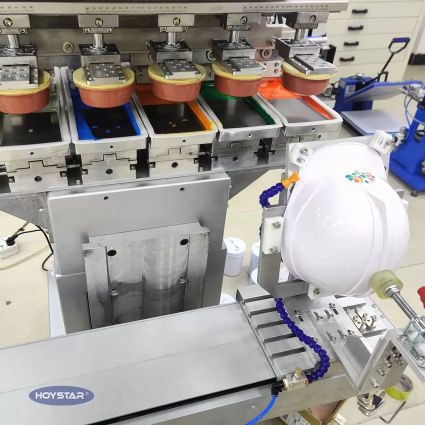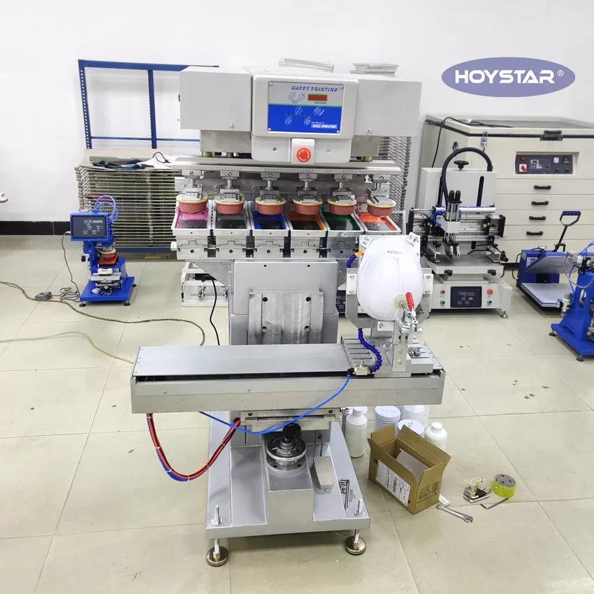 हट ट्यागहरू: शटल वर्कटेबलको साथ 6 रङ प्याड प्रिन्टर