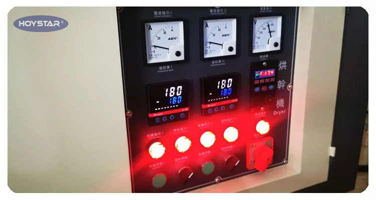 मेसिन एक सञ्चालन प्यानल संग सुसज्जित छ। सुकाउने तापमान तपाईंको सुकाउने आवश्यकताहरू पूरा गर्न स्वतन्त्र रूपमा समायोजित गर्न सकिन्छ।