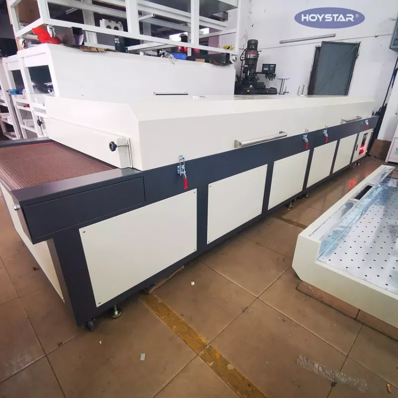चीनमा व्यावसायिक निर्माताको रूपमा, हामी तपाईंलाई कन्वेयर बेल्टको साथ उच्च दक्षता HOYSTAR ठूलो इन्फ्रारेड ड्रायर मेसिन प्रदान गर्न चाहन्छौं। स्क्रिन प्रिन्टिङ, पेन्टिङ, हट-सेटिङ एडेसिभ एप्लिकेसन, इन्कजेट प्रिन्टिङ, र थप जस्ता प्रक्रियाहरू पछि विभिन्न उत्पादनहरू - जस्तै कपडा, झण्डा, ब्यानर, एल्युमिनियम पाना, गिलास, कागज र प्लास्टिक सुकाउनका लागि उपयुक्त।