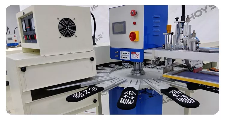 चीनमा व्यावसायिक निर्माताको रूपमा, हामी तपाईंलाई उच्च द्रुत HOYSTAR ठूलो साइज मोजा सिल्क स्क्रिन प्रिन्टिङ मेसिन प्रदान गर्न चाहन्छौं। यो उच्च-भोल्युम उत्पादनको लागि उपयुक्त 16 वर्कस्टेशन मेसिनको साथ आउँछ। यसमा उन्नत PLC र टच स्क्रिन कन्ट्रोलले मोजाको तलव र हिल प्रिन्ट गर्न सक्ने सुविधा दिन्छ। एक एकीकृत IR सुकाउने सुरुङले सिलिकन र मसीको प्रभावकारी सुख्खा सुनिश्चित गर्दछ