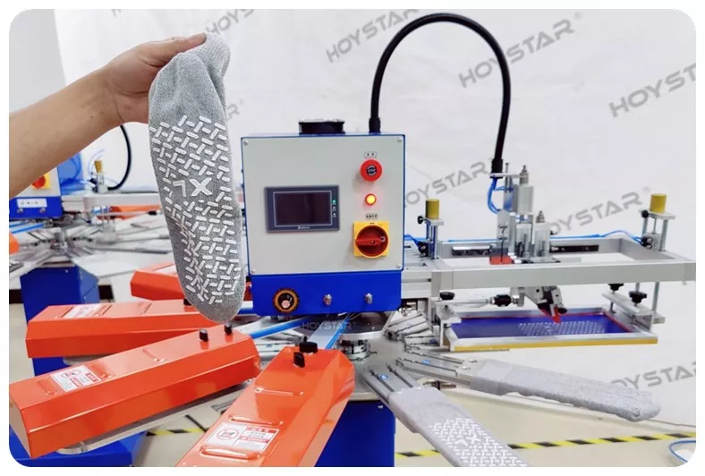 मोजाहरूका लागि हाम्रो नन-स्लिप स्क्रिन प्रिन्टिङ मेसिन उच्च-गुणस्तरको गैर-स्लिप मोजाहरू जस्तै बच्चा मोजाहरू, पाल्तु जनावरहरूको मोजाहरू, वयस्क मोजाहरू, सकर मोजाहरू, ग्रिप मोजाहरूका लागि डिजाइन गरिएको हो। एथलेटिक, चिकित्सा, बालबालिका, र योग मोजाहरूमा विशेषज्ञता निर्माताहरू मुद्रणको लागि खरिद गर्न उपयुक्त।
