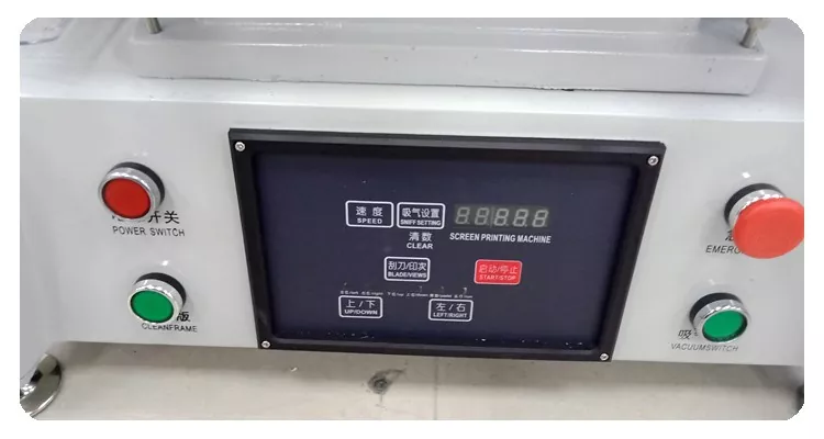 सेमी-अटोमेटिक स्केल स्क्रिन प्रिन्टिङ मेसिनरी नियन्त्रण गर्न प्यानलको साथ स्केलहरूको लागि