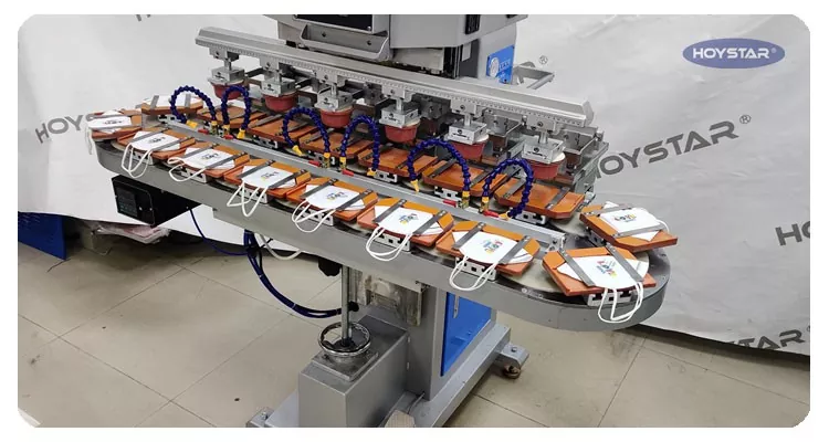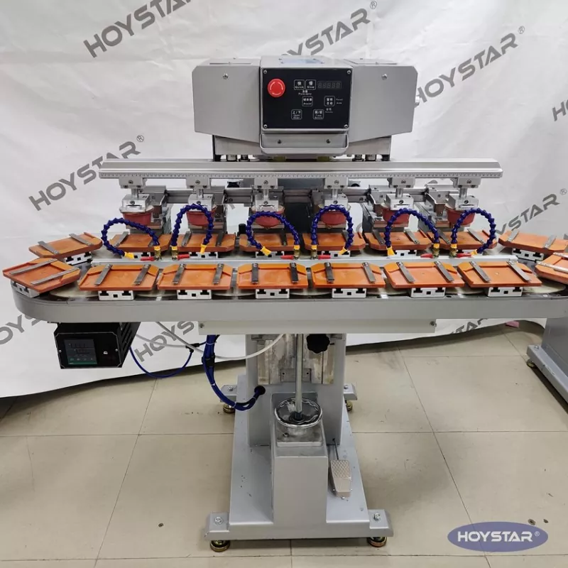 चीनमा व्यावसायिक निर्माताको रूपमा, हामी तपाईंलाई कन्वेयर कार्यटेबलको साथ उच्च दक्षता HOYSTAR सिक्स कलर प्याड प्रिन्टर प्रदान गर्न चाहन्छौं। यो मेसिनले उत्पादनहरूको लागि निरन्तर छ रङ प्याड प्रिन्टिङ सक्षम बनाउँछ, एक रङ दर्ता एक चक्रमा पूरा हुन्छ। यो मेसिनले रोटरी टर्नटेबल कन्भेइङ प्रणाली अपनाउछ, जसले मुद्रण प्रक्रियामा निरन्तर र सहज उत्पादन स्थानान्तरण सक्षम गर्दछ, केवल एक रोटरी चक्रमा पूर्ण 6-रङ ओभरप्रिन्टिङ पूरा गर्ने क्षमता। शटल-प्रकार प्याड प्रिन्टरहरूको तुलनामा, यसको गति धेरै छिटो छ।